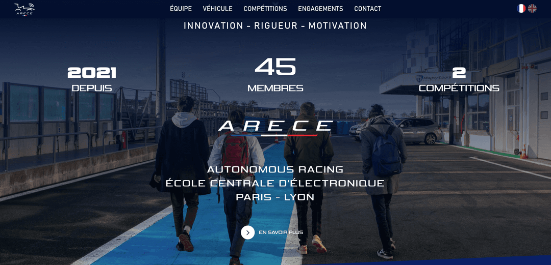 Ce projet, réalisé en collaboration avec une association de Formula Student (une compétition étudiante de voitures). Le but est de concevoir un site vitrine. Ce site, réalisé en React, présente l'équipe, les compétitions, la voiture, etc. Il a été réalisé au sein de l'équipe RSI de cette association dont je faisais partie.