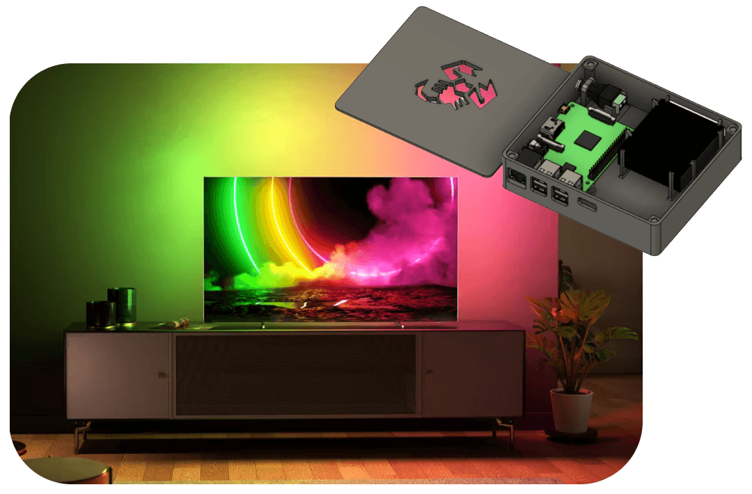 Ce projet avait pour but de concevoir un système ambilight pour une télé. Un système Ambilight est une technologie d'éclairage intégrée à un téléviseur qui projette des couleurs correspondant au contenu affiché à l'écran. Pour ce faire, je me suis équipé d'une raspeberry pi 2B et j'y ai intégré hyperion qui est une solution open source qui permet de gérer un bandeau LED en fonction d'une source vidéo. Ce projet n'a pas été si simple, car il a fallu trouver et compiler une version 32bit d'hyperion, parce que la raspberry pi 2B n'est pas 64b. De plus je ne pouvais pas installer l'image faite pour raspberry comme il fallait aussi y installer un serveur web.