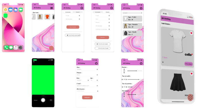 Le but de ce projet était de faire une maquette d'application qui devait intégrer de la rélité mixte adaptée à l'essayage de vêtements. Le challenge a été développé une application iOS sans environnement MacOS. Pour faire, je me suis servi de React Native qui m'a permis de coder sur mon pc tandis que l'application était compilée sur mon iPhone